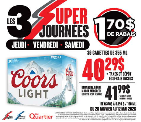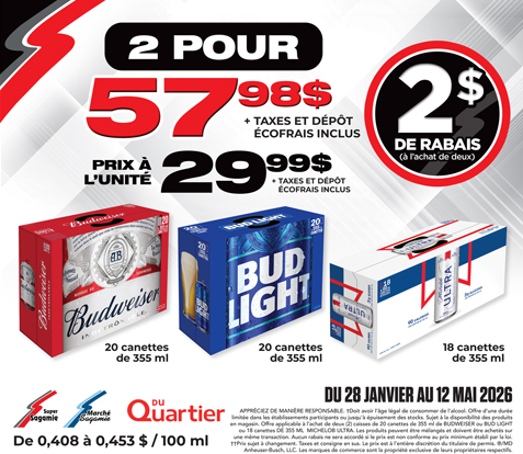 *La disponibilité des produits peut varier d’un marchand à un autre. Les prix et les dates de validité sont sujet à changement sans préavis. Les affichettes de promotion en magasin ont préséance sur ce qui est affiché sur le site web.